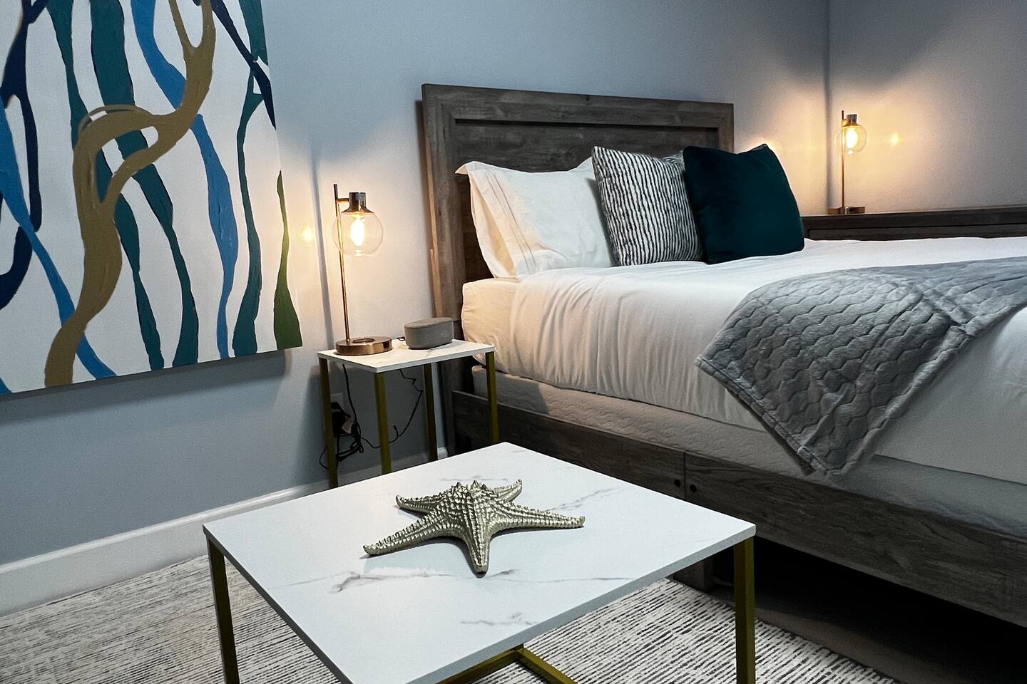 Each one of our suites was recently remodeled and redesigned, interior comes well-equipped with comforts for you to enjoy your stay. We are taking extra measures to keep our units extra clean for your comfort. The couch in the living room opens into a queen sleeper to maximize occupancy. There is a kitchenette opening into the living room. This kitchen is absolutely beautiful with granite counter top, microwave, fridge coffee machine and a toaster. Inside the cabinets you can find plates, cups, utensils and cutlery as you may need. Every room has its own smart TV for any online content, free high speed WiFi. Self check-in/out with our smart locks. Every detail has been brought up to the highest level for your enjoyment! Enjoy the glamour of this stylish, upscale place.