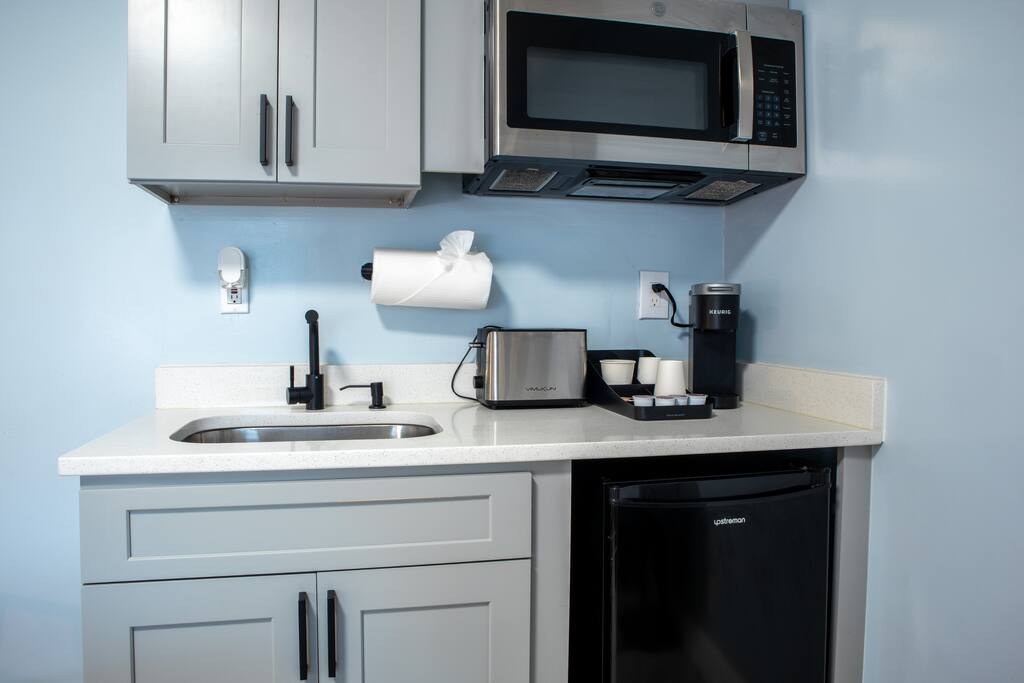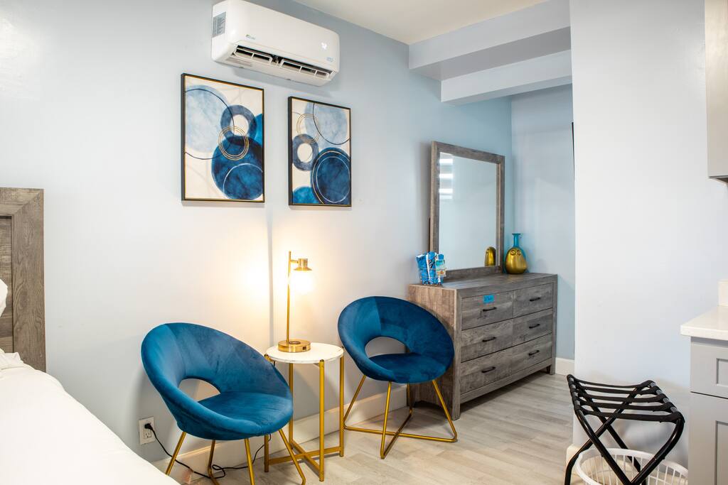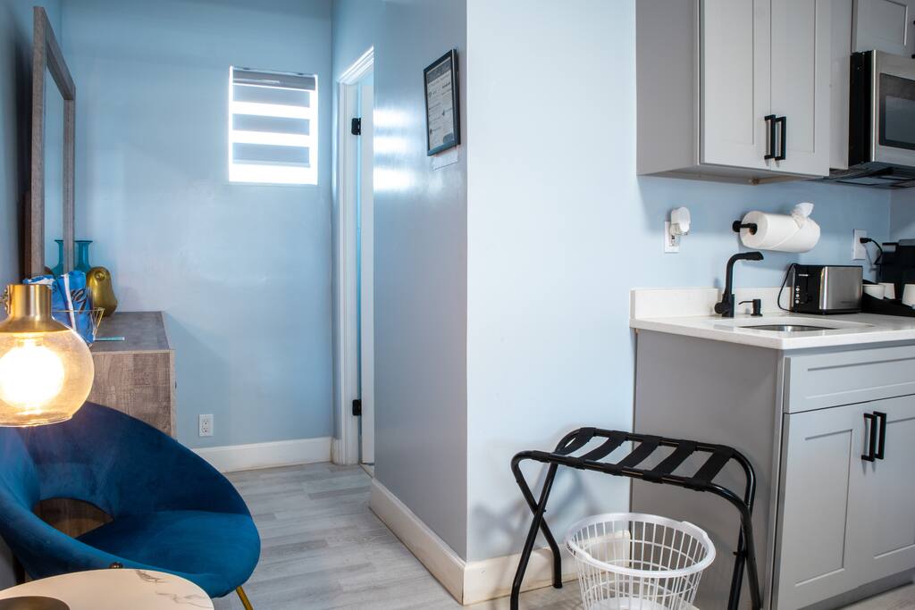 Each one of our suites was recently remodeled and redesigned, interior comes well-equipped with comforts for you to enjoy your stay. We are taking extra measures to keep our units extra clean for your comfort. There is a kitchenette which is absolutely beautiful with granite counter top, microwave, fridge coffee machine and a toaster. Inside the cabinets you can find plates, cups, Ice bucket, utensils and cutlery as you may need. • Self check-in/out with our smart locks. • Every room has 43" smart HD TV for any online content and free high speed WiFi. • In the kitchen you'll find a Ice bucket. The ice machine is located at the vending room in the front of the property. • Wireless chargers for your phones are at the base of every bedside lamp. Also on the base of the lamp there is a USB plug. • Bluetooth speaker to connect to your device to play your favorite tunes. Also the top of the speaker is a wireless charger. • Bedroom and kitchen ceiling lights have 2 modes. Regular bright mode and night mode for very soft illumination at night. (First turn on the light switch to activate the light fixture. Switch off and back on again to activate night light mode.) • In addition to fluffy bathroom towels, there are also black towels for your makeup. • When ready to go to the beach, we prepared for you microfiber towels which fold light and easy to carry. They are also fast dry and sand free! • Zebra blinds that can either be set on light to go through with privacy or complete blackout. Every detail has been brought up to the highest level for your enjoyment! Enjoy the glamour of this stylish, upscale place.