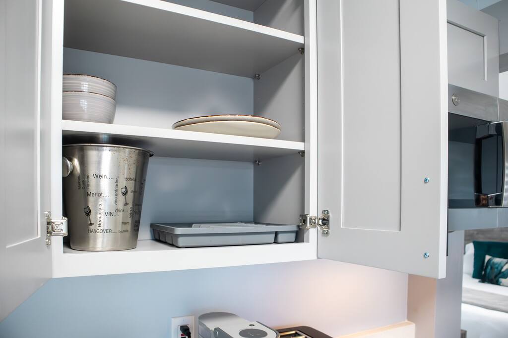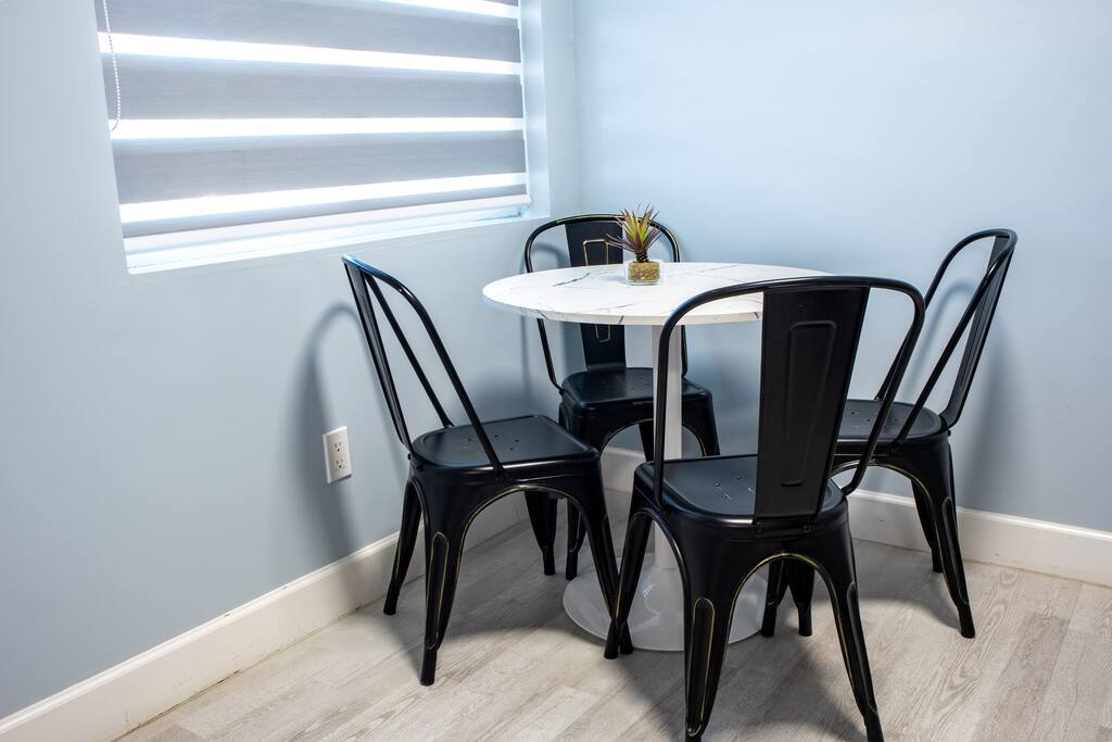 Each one of our suites was recently remodeled and redesigned, interior comes well-equipped with comforts for you to enjoy your stay. We are taking extra measures to keep our units extra clean for your comfort. This kitchen is absolutely beautiful with granite counter top, microwave, fridge coffee machine, 2 burners electric cooktop and a toaster. Inside the cabinets you can find pots, pans, plates, cups, ice bucket, utensils and cutlery as you may need. • Self check-in/out with our smart locks. • Every room has 43" smart HD TV for any online content and free high speed WiFi. • In the kitchen you'll find a Ice bucket. The ice machine is located at the vending room in the front of the property. • Wireless chargers for your phones are at the base of every bedside lamp. Also on the base of the lamp there is a USB plug. • Bluetooth speaker to connect to your device to play your favorite tunes. Also the top of the speaker is a wireless charger. • Bedroom and kitchen ceiling lights have 2 modes. Regular bright mode and night mode for very soft illumination at night. (First turn on the light switch to activate the light fixture. Switch off and back on again to activate night light mode.) • In addition to fluffy bathroom towels, there are also black towels for your makeup. • When ready to go to the beach, we prepared for you microfiber towels which fold light and easy to carry. They are also fast dry and sand free! • Zebra blinds that can either be set on light to go through with privacy or complete blackout. Every detail has been brought up to the highest level for your enjoyment! Enjoy the glamour of this stylish, upscale place.